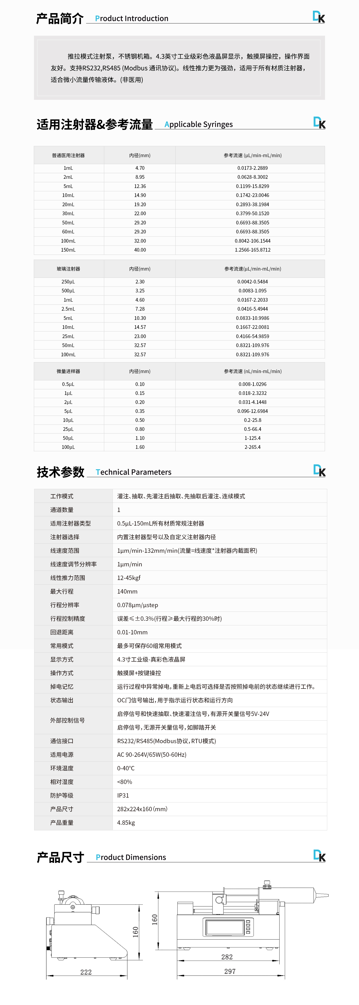 線速度范圍:1μm/min-132mm/min(流量=線速度*注射器內(nèi)截面積)